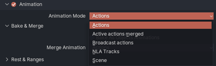 NLA Tracks – Exports only animations organized as NLA tracks (recommended when using Blender’s NLA Editor).