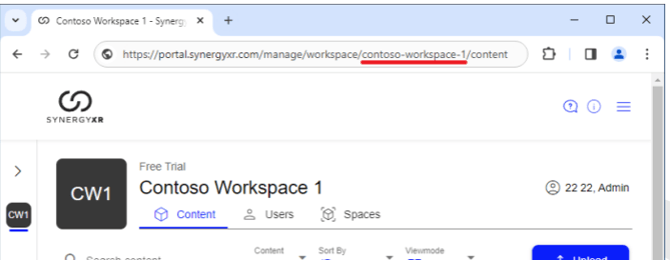 user account with Author-level access to a SynergyXR Workspace. Your credentials will