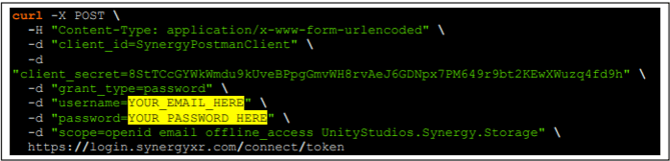 (Note: The Client Secret for the SynergyXR Content API is not confidential as it is a public