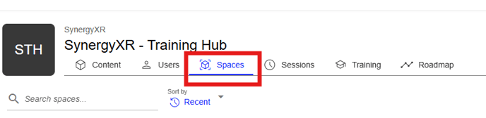 - Open the SynergyXR Manager and go to the tap “Spaces”. (https://portal.synergyxr.com/)