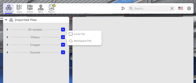 Users have the option to select a local file from their PC, or browse the content available on the workspace.