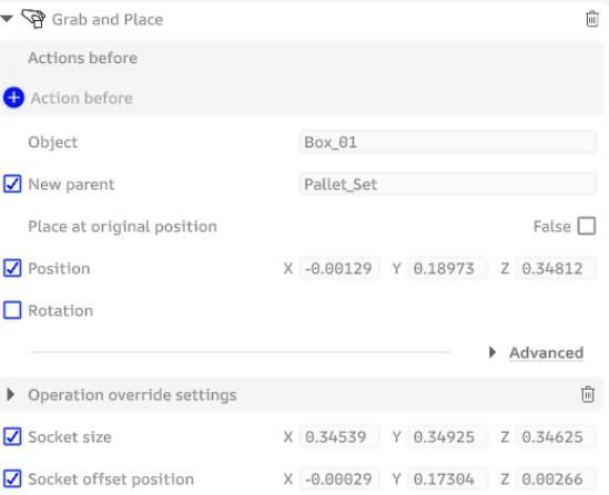 - Repeat the same process you did for the first Grab and Place operation, except add Box_02 this time and position it at Box_04’s location.