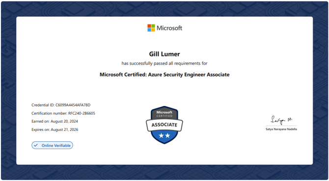 This is a list of the certifications held by our Azure security-certified engineers. We strive to always have qualified personnel overseeing security