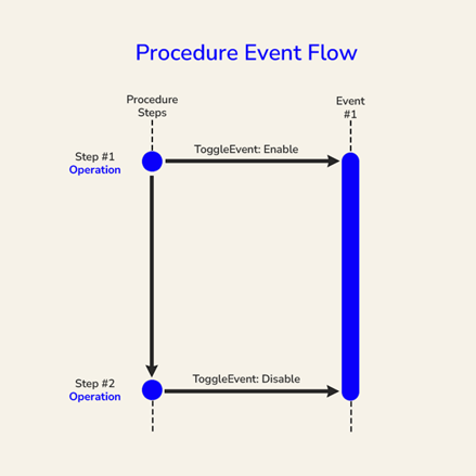 A simple way to understand Events is to see them as extra operations that are triggered by the user’s behavior during the main steps of the procedure. The flowchart below represents the relationship between Steps, Operations, Actions and Events. Let’s break it down.